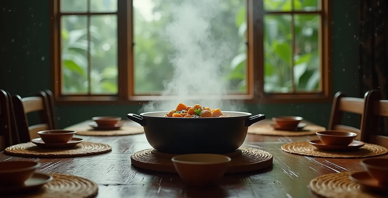 Contrario a la creencia de que es solo una sopa espesa, el sancocho dominicano es en realidad un termómetro social que aparece en momentos clave: celebraciones, días de lluvia o fiestas patrias. No es un plato de menú diario porque su valor no reside en sus ingredientes, sino en el ritual de preparación colectiva y la sobremesa extendida que desafía al reloj, un acto cultural que este artículo descifra para el viajero curioso.